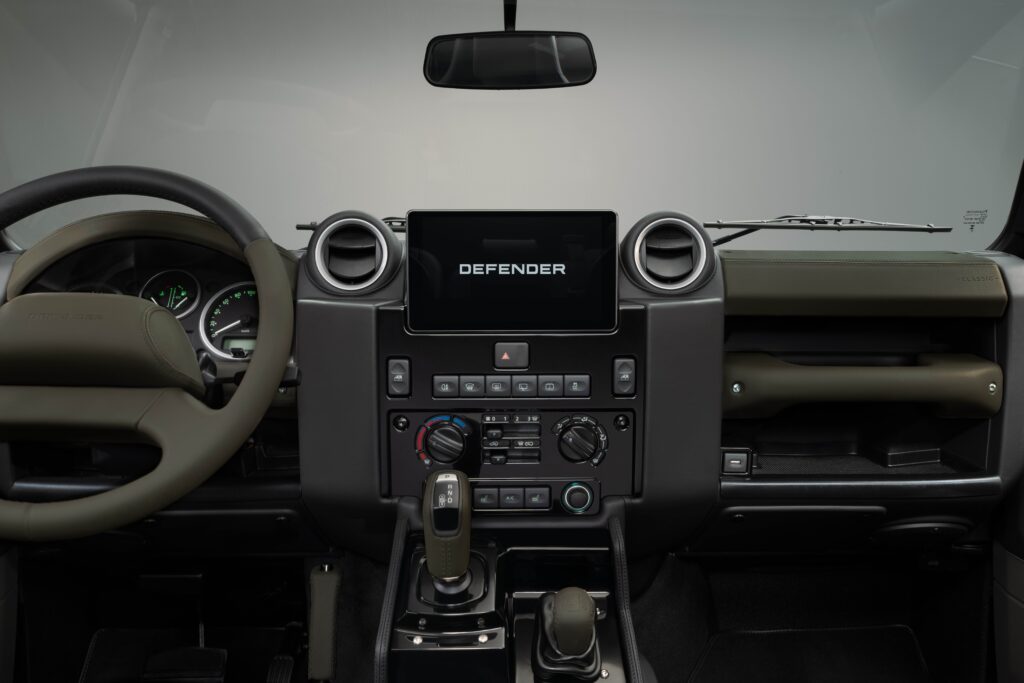 Also for the first time on Classic Defender, new interior choices matching Defender OCTA include lightweight Ultrafabrics™ PU in Khaki Green, Light Cloud and Lunar, alongside Burnt Sienna semi‑aniline leather. To match Defender OCTA Black, Ebony leather is available too. Clients can choose hand‑trimmed heated Recaro sports seats, and work with Land Rover Classic’s design team to faithfully replicate the colour placement on the steering wheel, transmission levers, dashboard, headlining and door trims.
